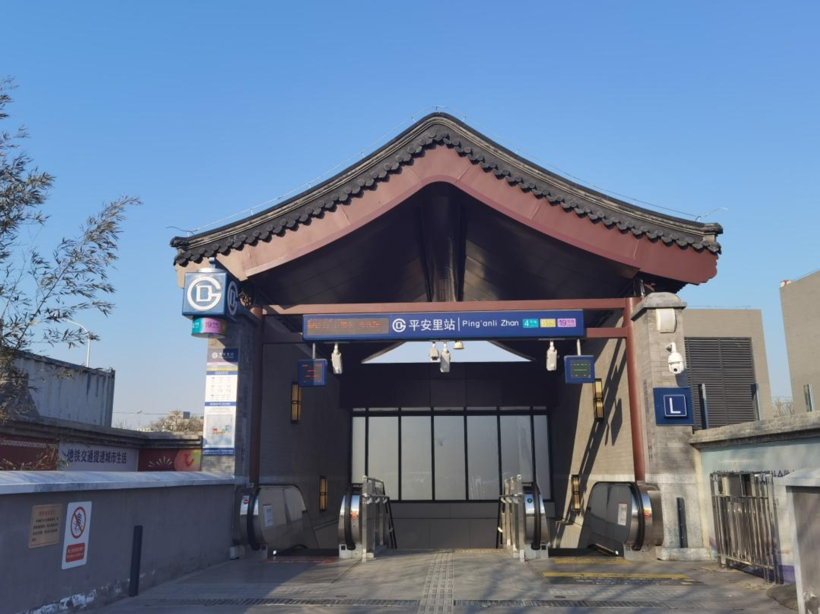 位于西二环内的平安里站,多个出入口设计成仿古样式,融入周边老城的胡同之中。京投所属轨道运营公司站务部副经理郭司晨说,这种设计让地铁站不再成为突兀的城市节点。