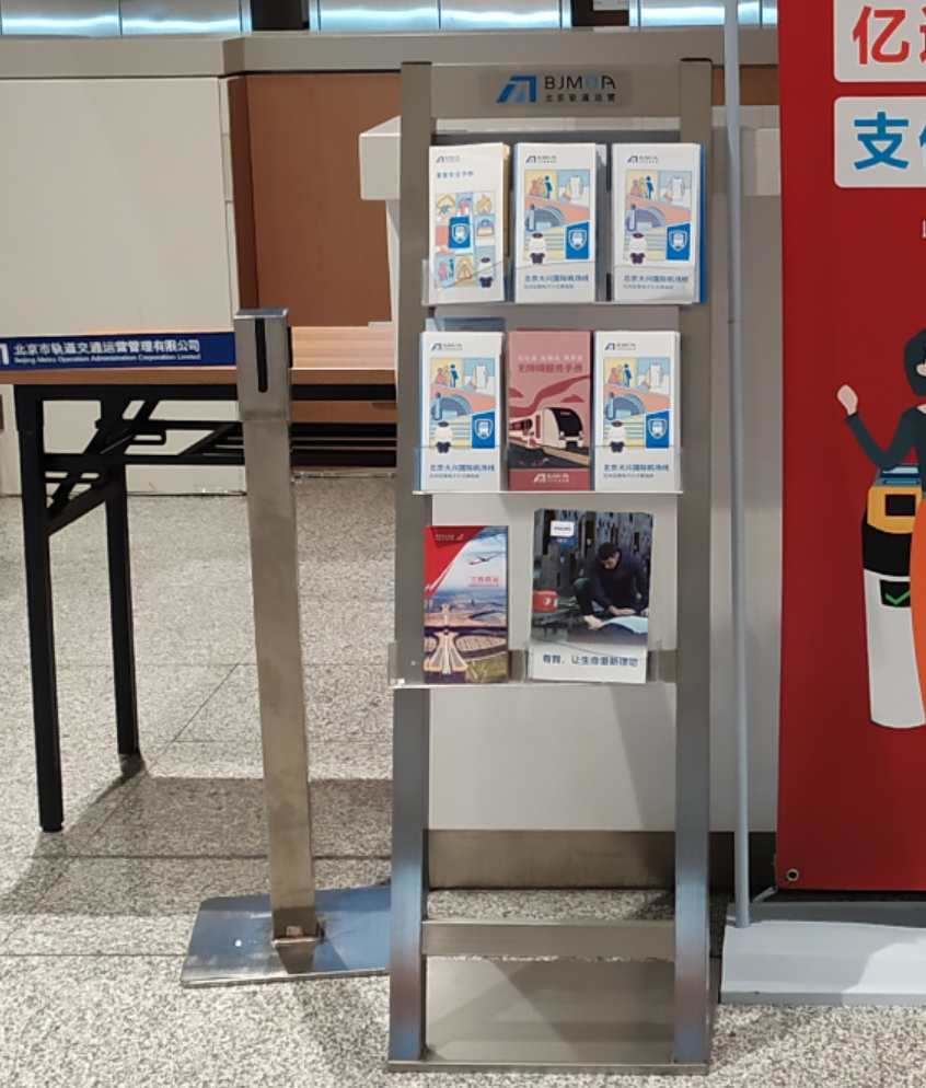 为了让乘客第一时间了解车站AED设备的安装位置,获取更多急救信息,燕房线、大兴机场线所有车站在进站明显位置均张贴AED提示及车站三维AED导引,街区图增加周边医疗点位置、距离、电话等信息。