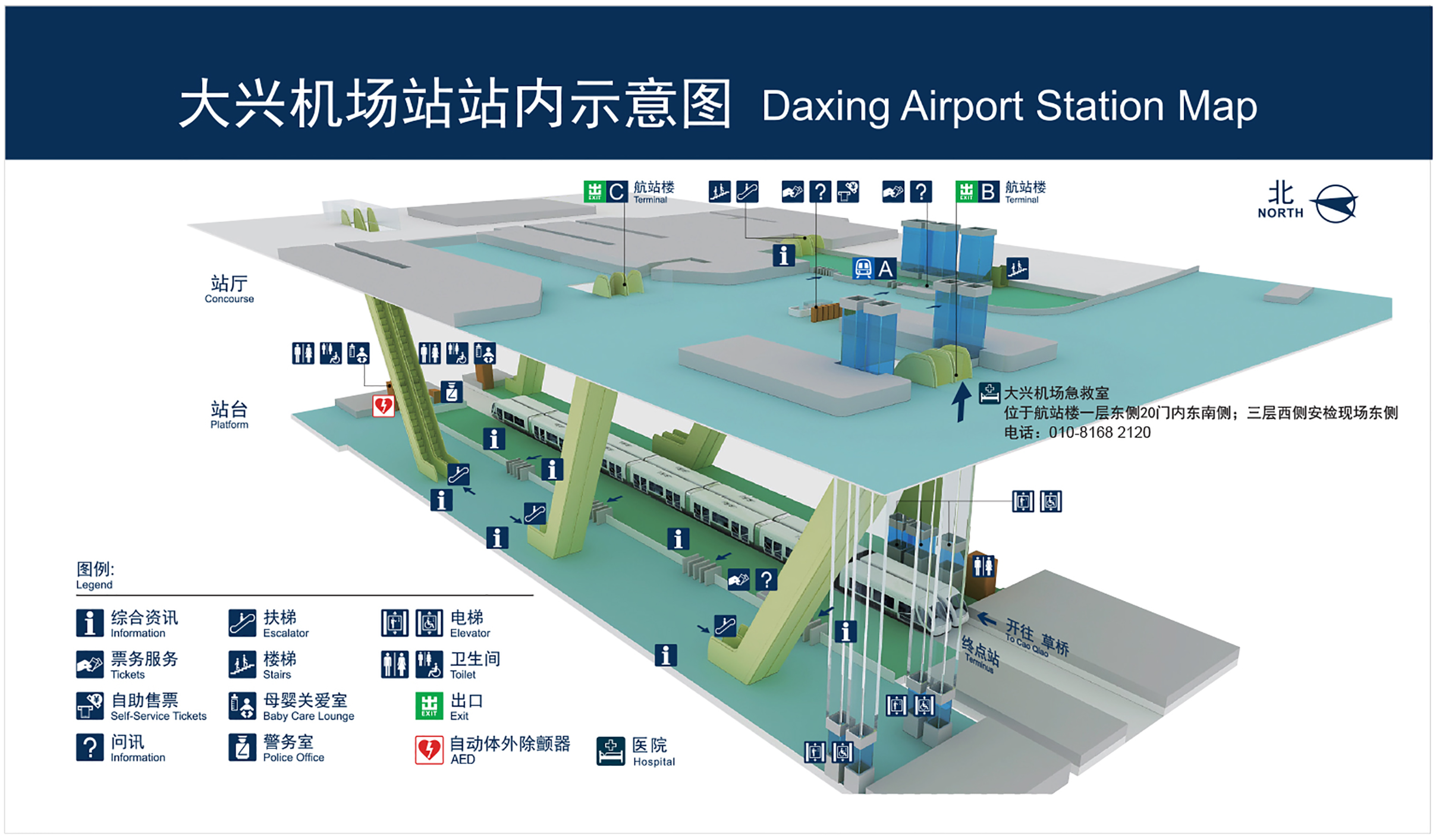 此外,电子转盘 已同步完成602名车站工作人员的急救取证培训,取证率达99.3%。为了让乘客第一时间了解车站AED设备的安装位置,获取更多急救信息,燕房线、大兴机场线所有车站在进站明显位置均张贴AED提示及车站三维AED导引,街区图增加周边医疗点位置、距离、电话等信息。