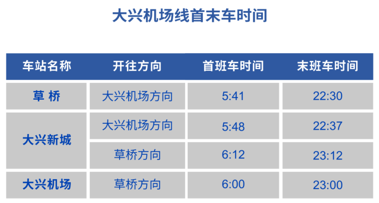 为进一步做好大兴机场陆侧交通接驳服务,2023年4月28日起,地铁大兴机场线草桥站至大兴机场站方向,在始发站草桥站首班车时间由6:00提前至5:41。
