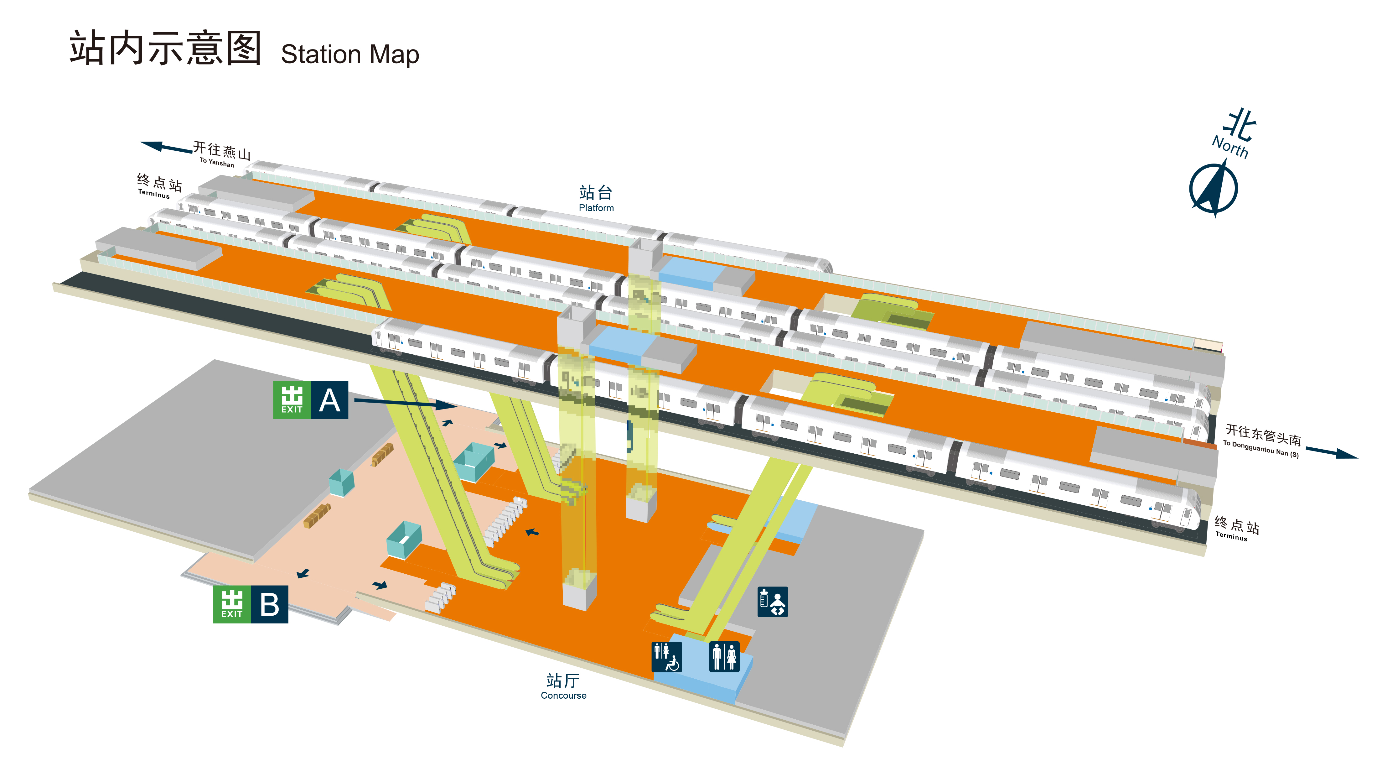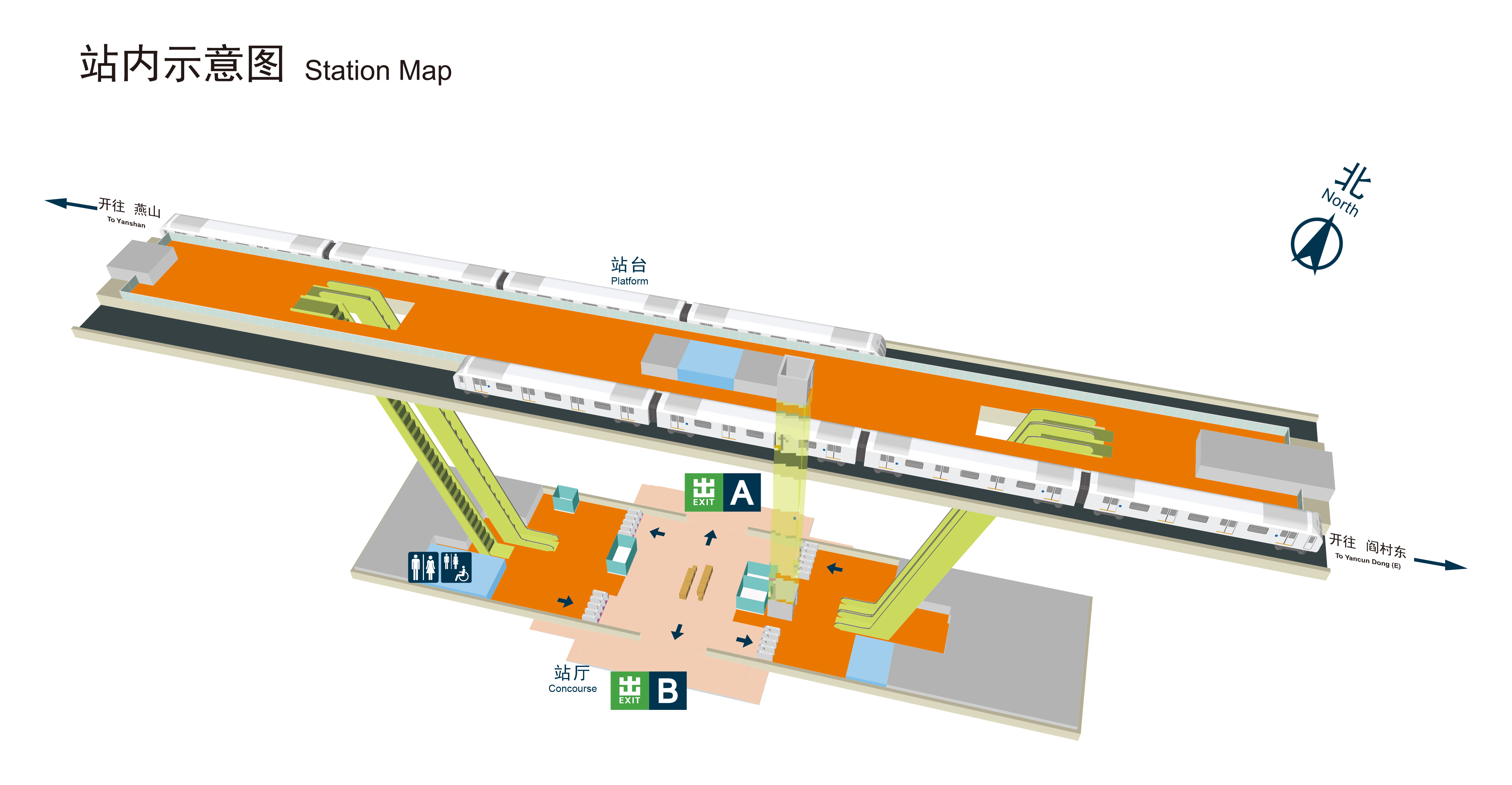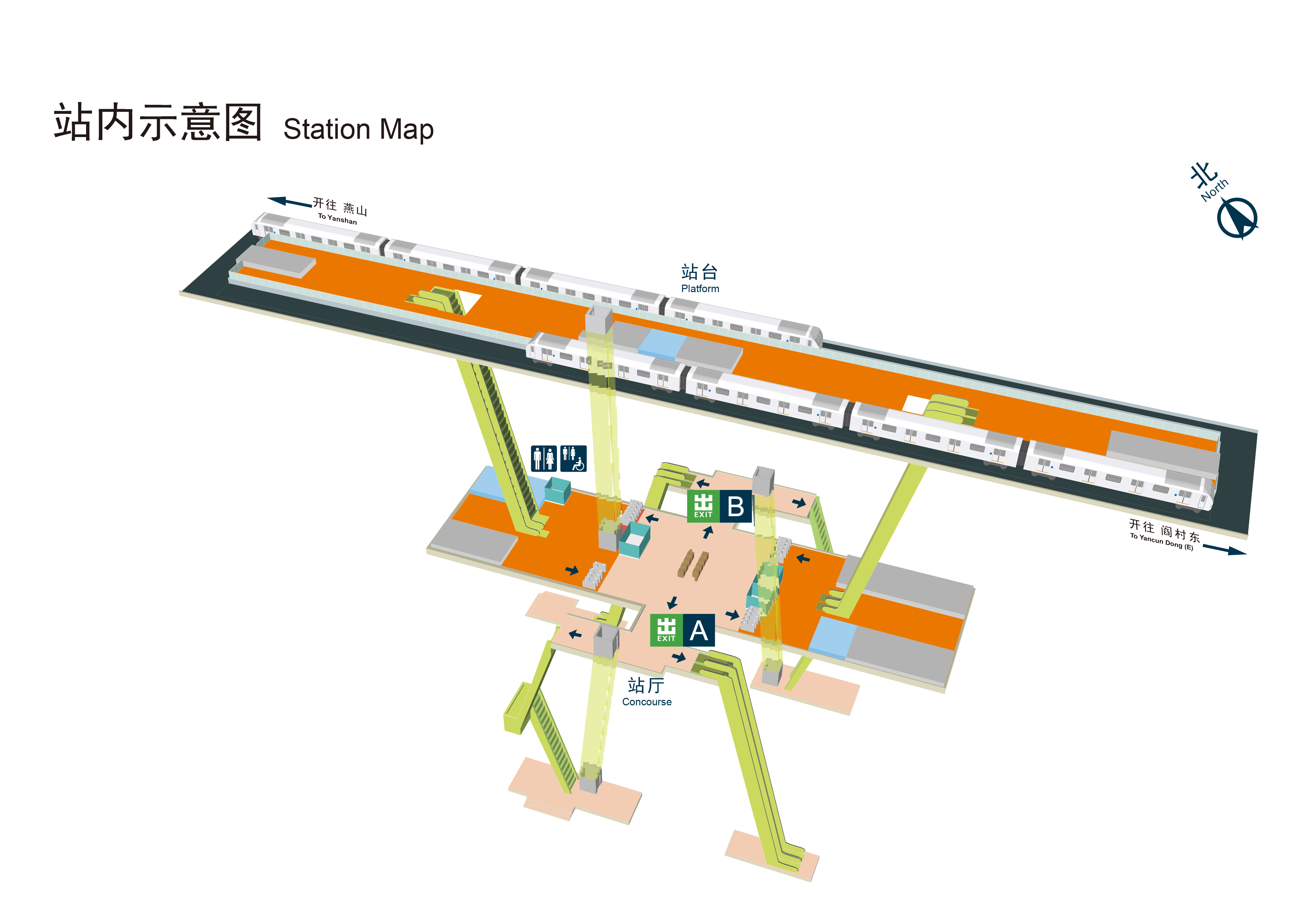 为满足乘客出行需求,燕房线全线所有车站均设置有卫生间。