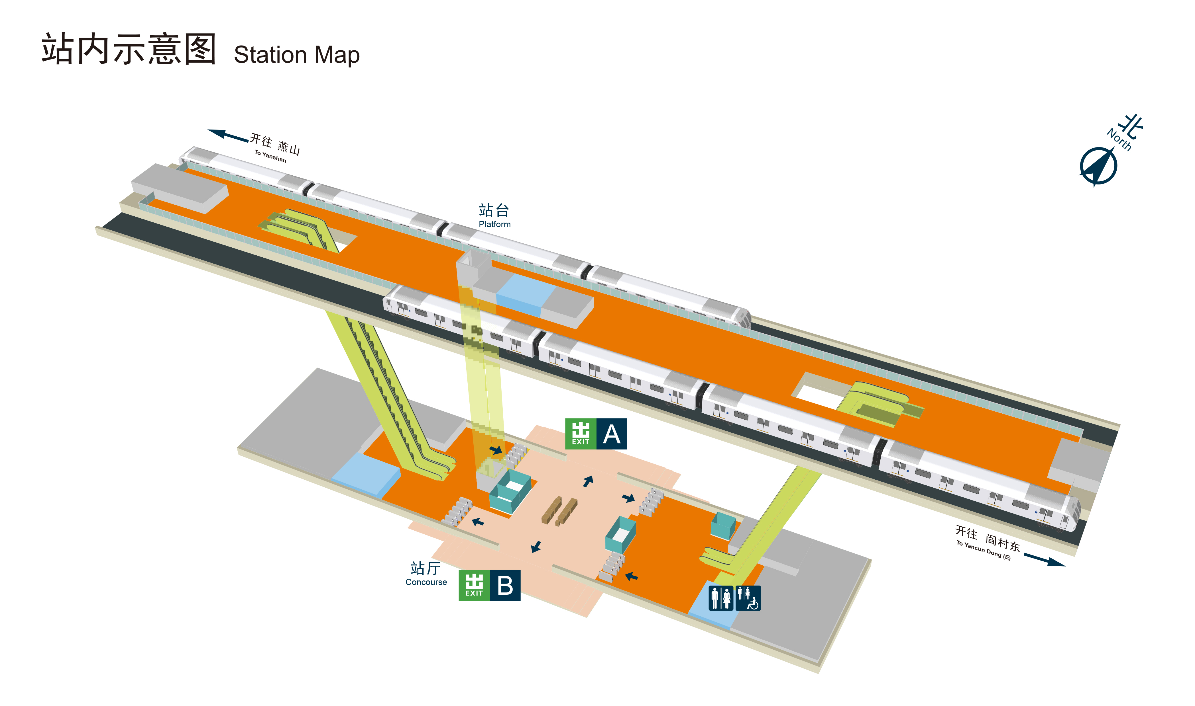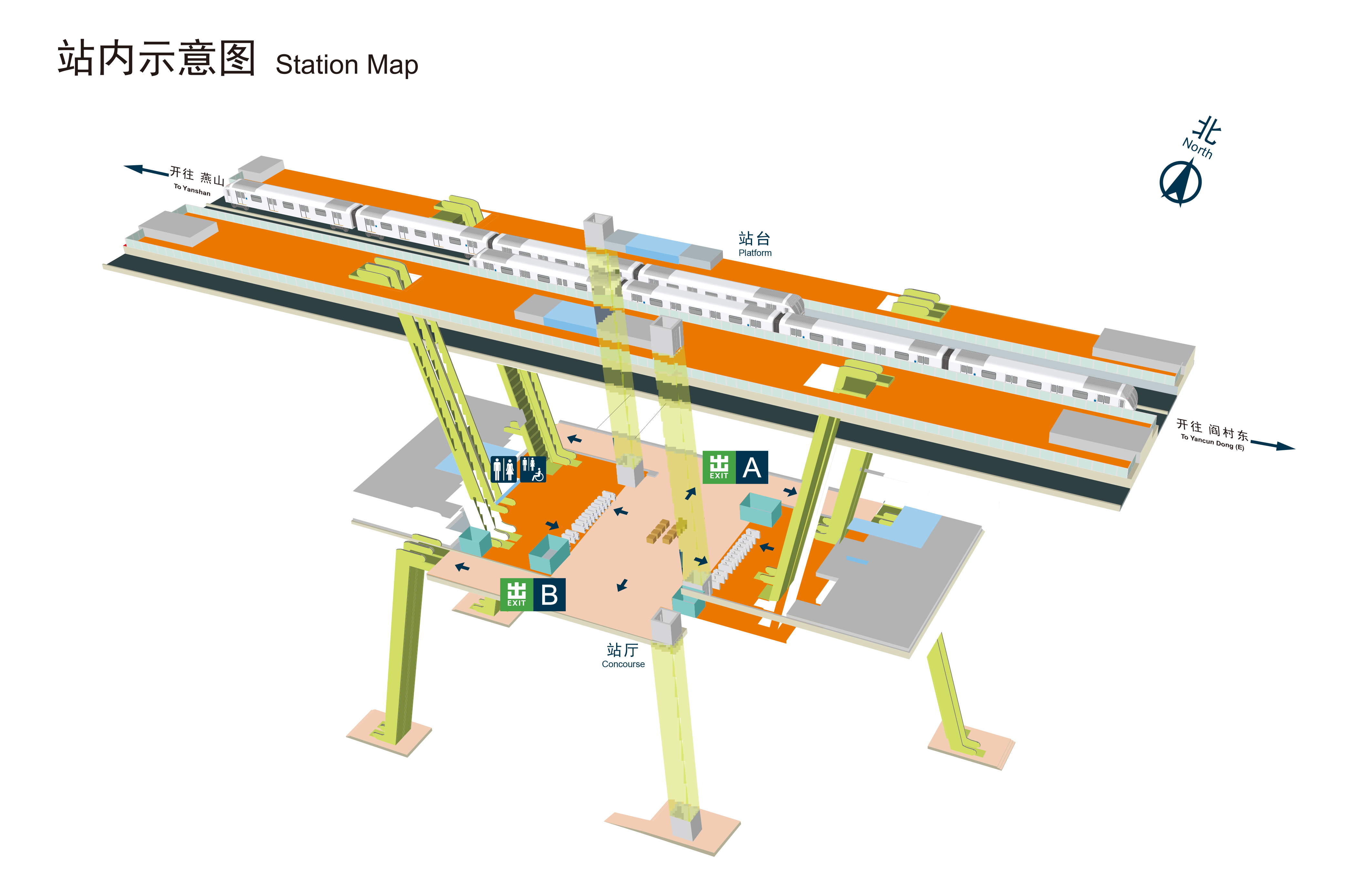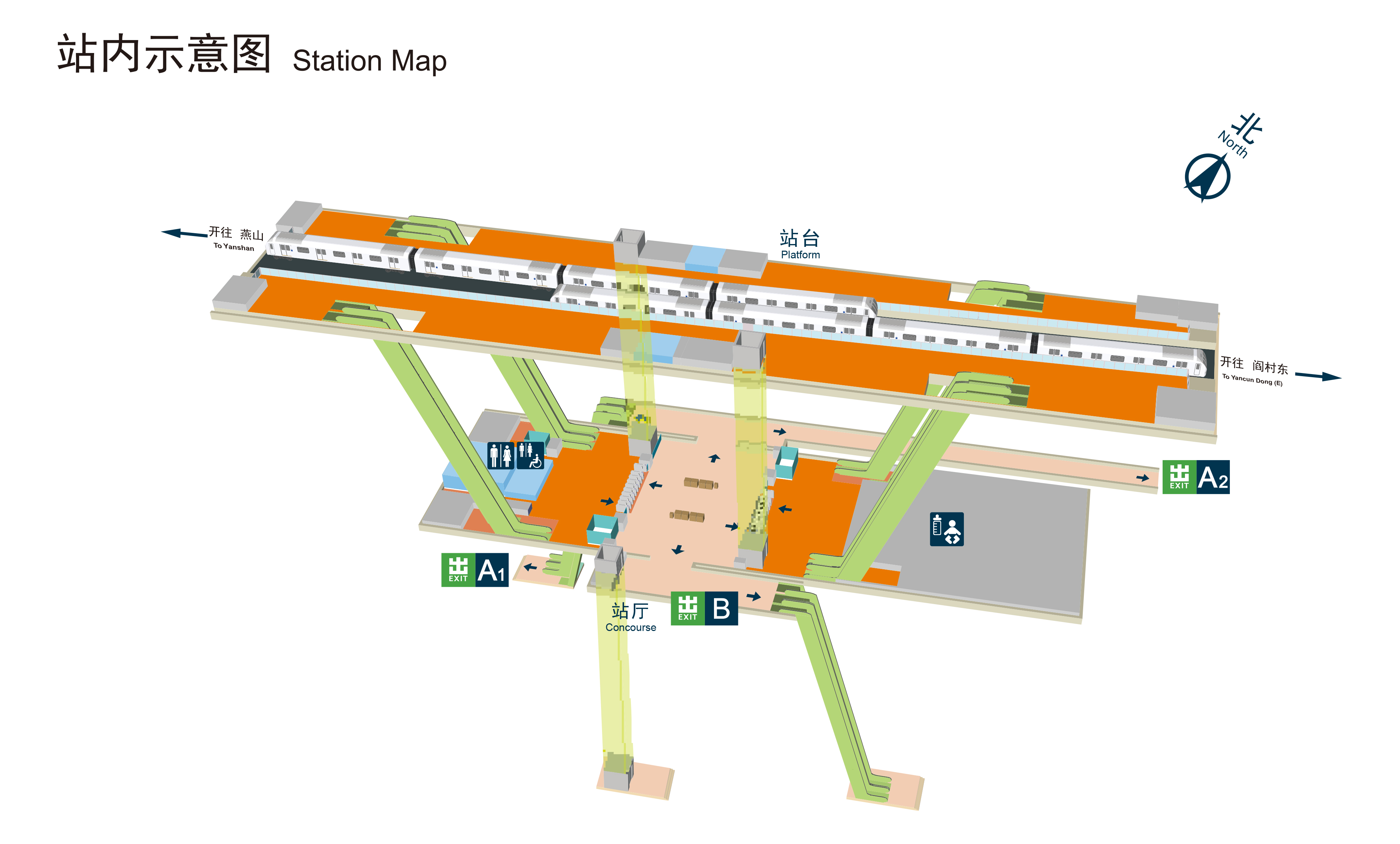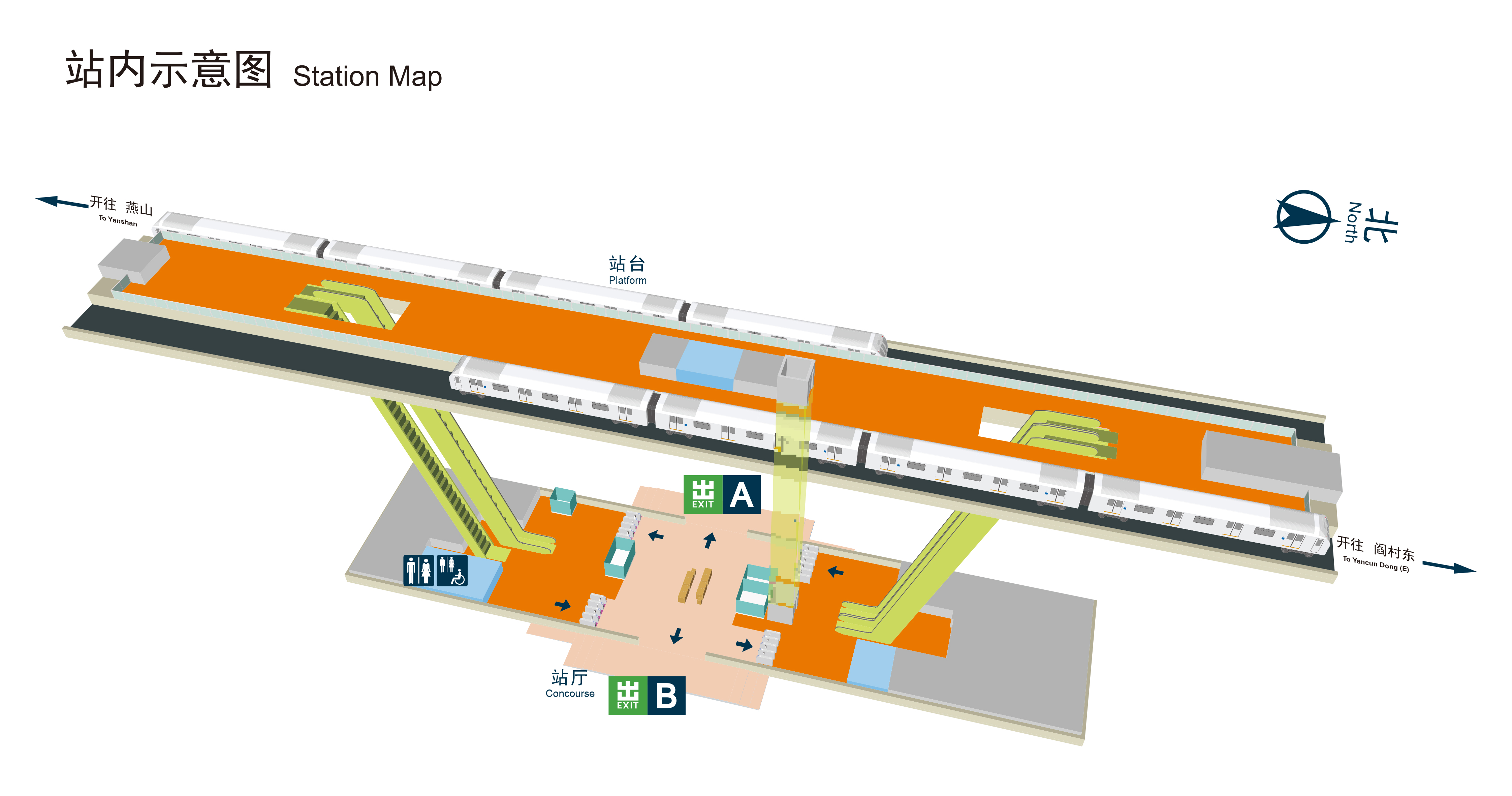 为满足乘客出行需求,燕房线全线所有车站均设置有卫生间。